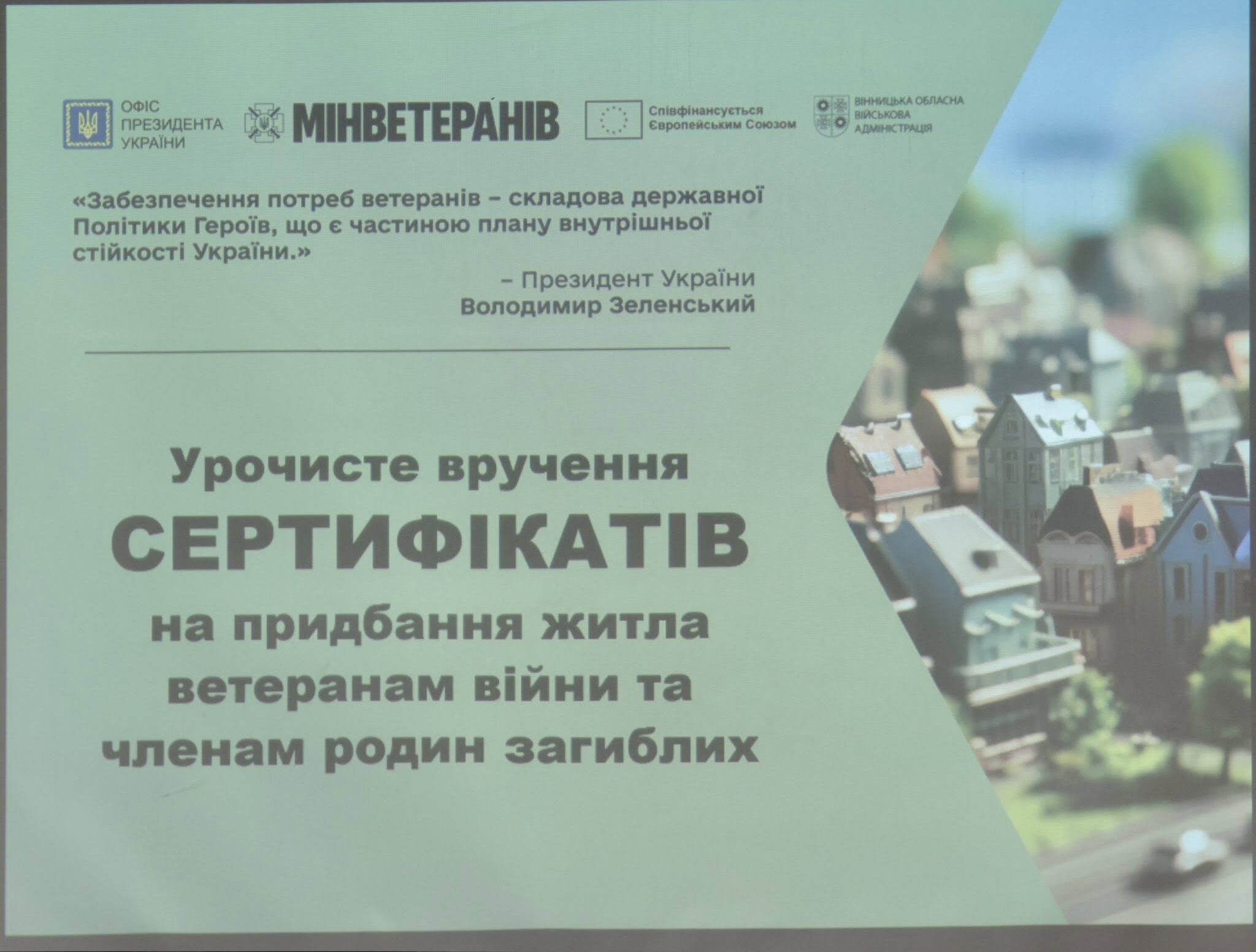 Нещодавно область отримала черговий транш державної субвенції на суму 100 млн грн. 40 ветеранів війни та родин загиблих воїнів з Вінниччини отримали кошти на придбання житла. За останні два роки грошову компенсацію для купівлі житла матимуть 320 родин Вінниччини.