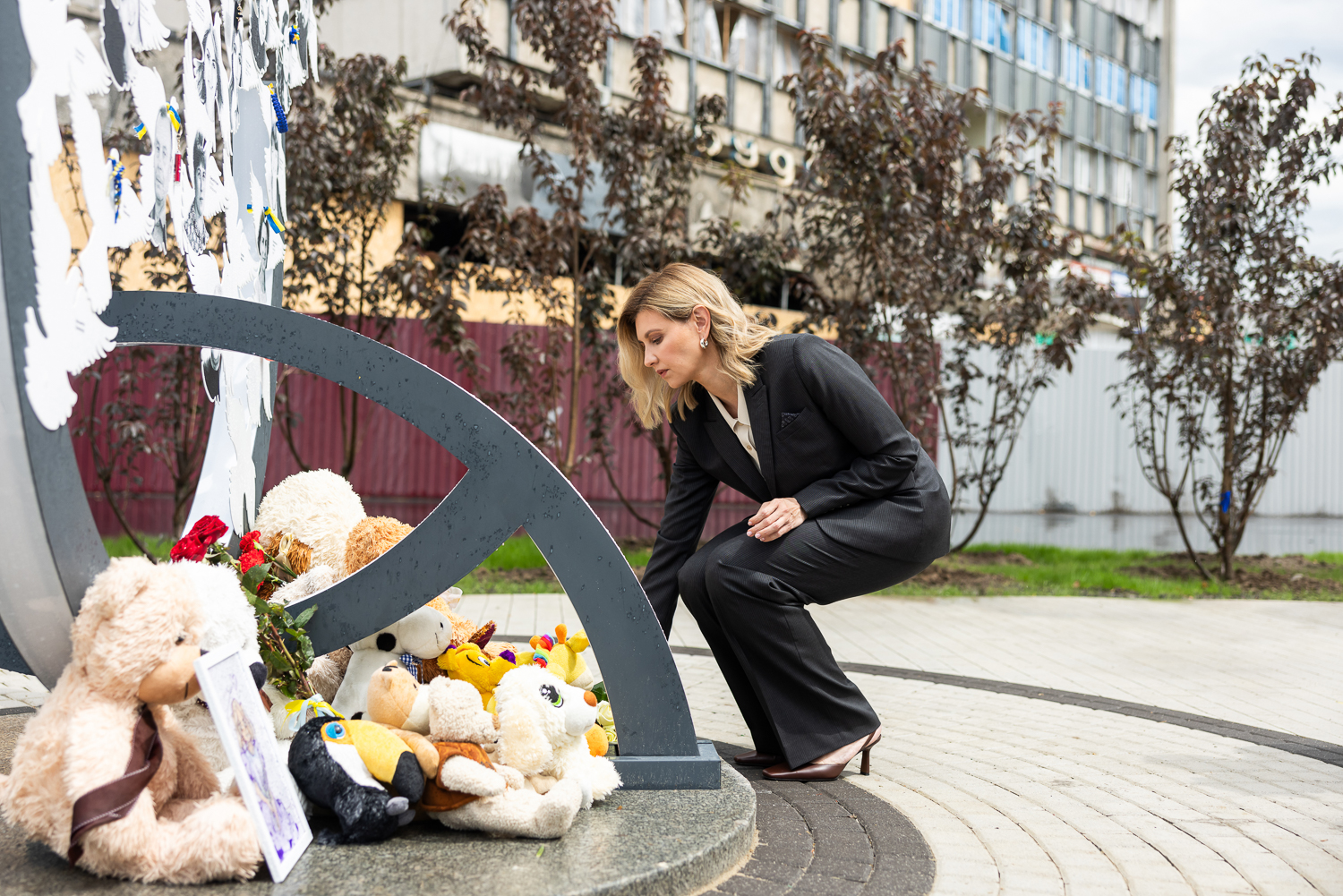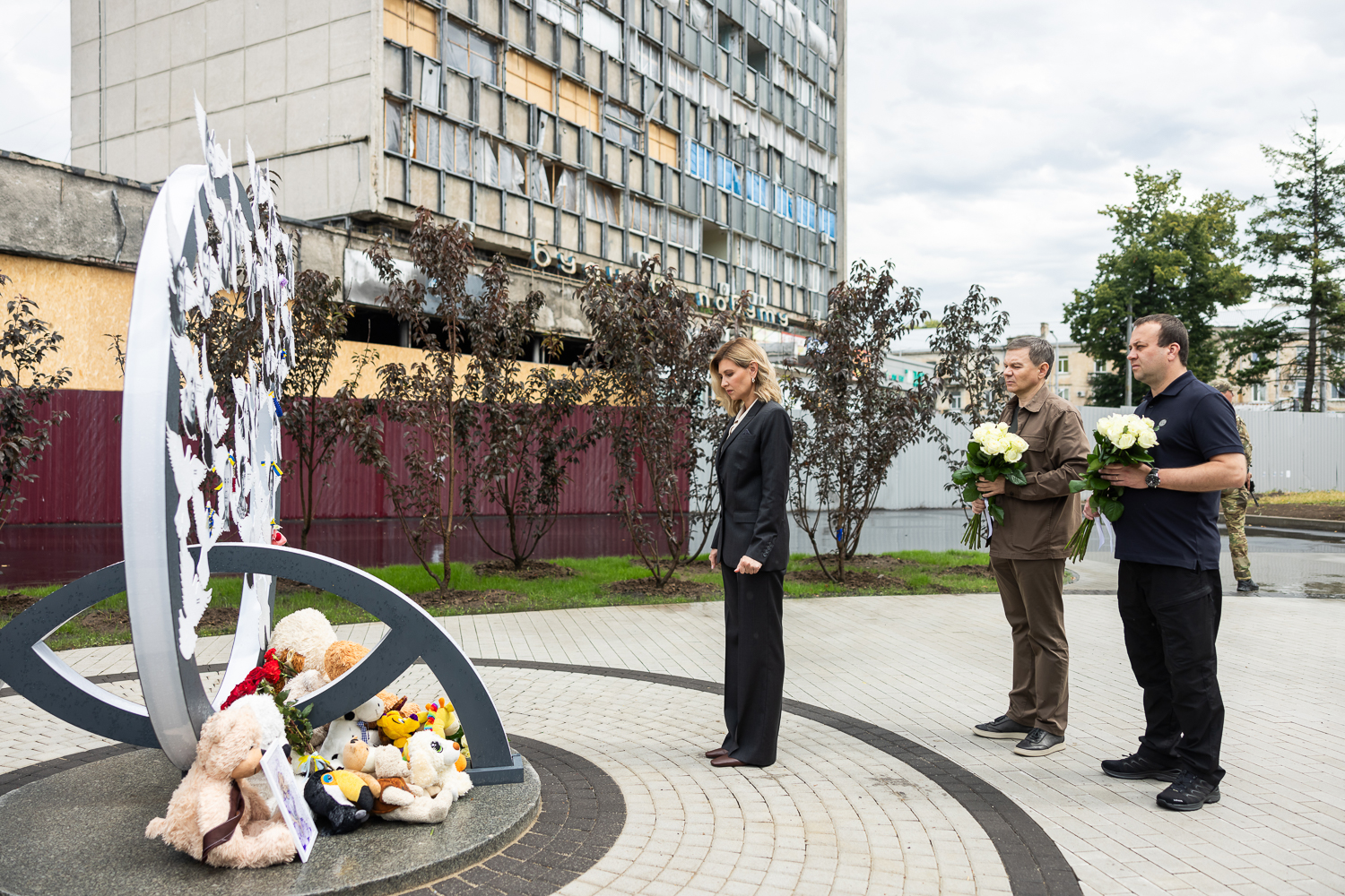 Дружина Президента України, Олена Зеленська розпочала візит до Вінниці з відвідання меморіалу пам’яті жертв російського обстрілу 14 липня 2022 року. Вона вшанувала жертв обстрілу російськими «Калібрами» та поклала квіти до Меморіалу.