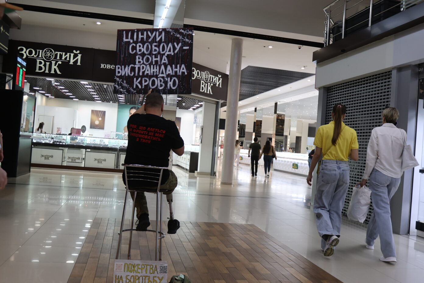 У Вінниці, в одному з найбільших торгових центрів міста — «Мегамолл», відбулася мирна акція-нагадування про вдячність військовим. Її ініціатор — Євген Сивопляс, ветеран російсько-української війни, засновник громадської організації «Зруш скелю», яка займається просвітницькою діяльністю у сфері взаємодії з ветеранами.