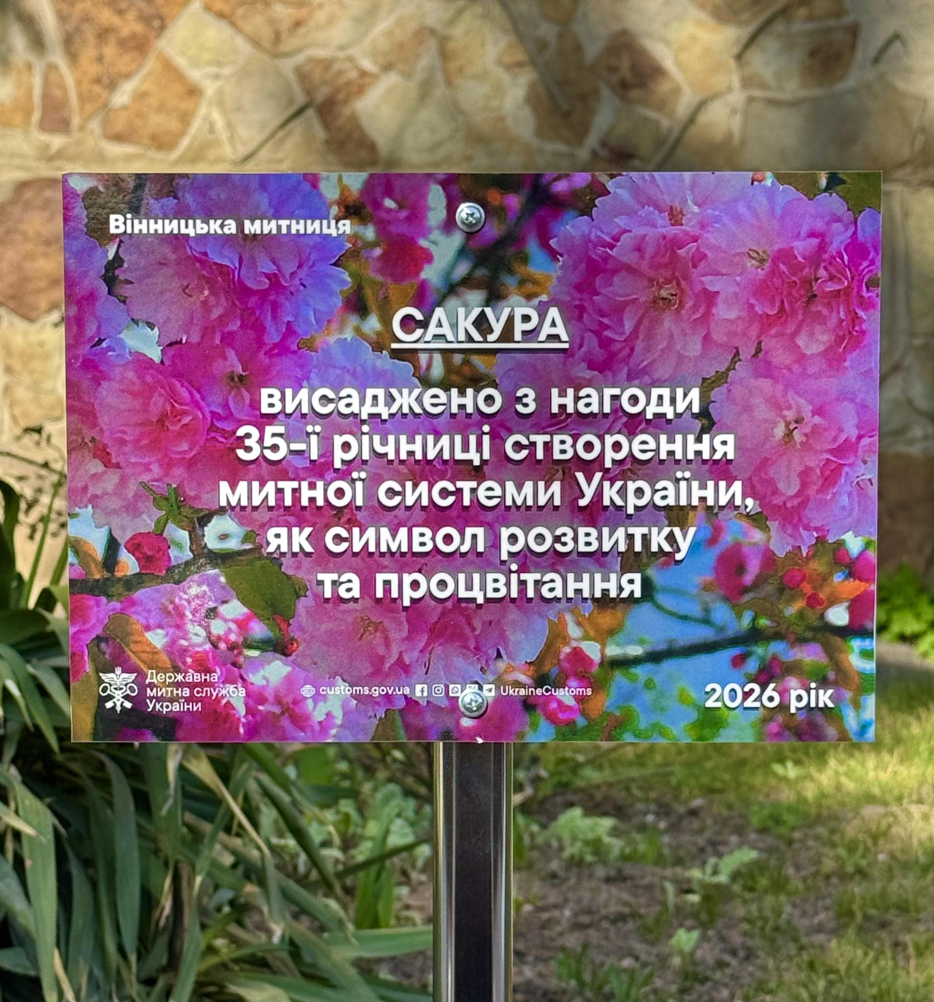 На території Вінницької митниці працівники висадили сакуру, як символ розвитку та процвітання. Це відбулось в рамках акції до ювілею Державної митноїї служби України, яка відзначає своє 35-річчя.