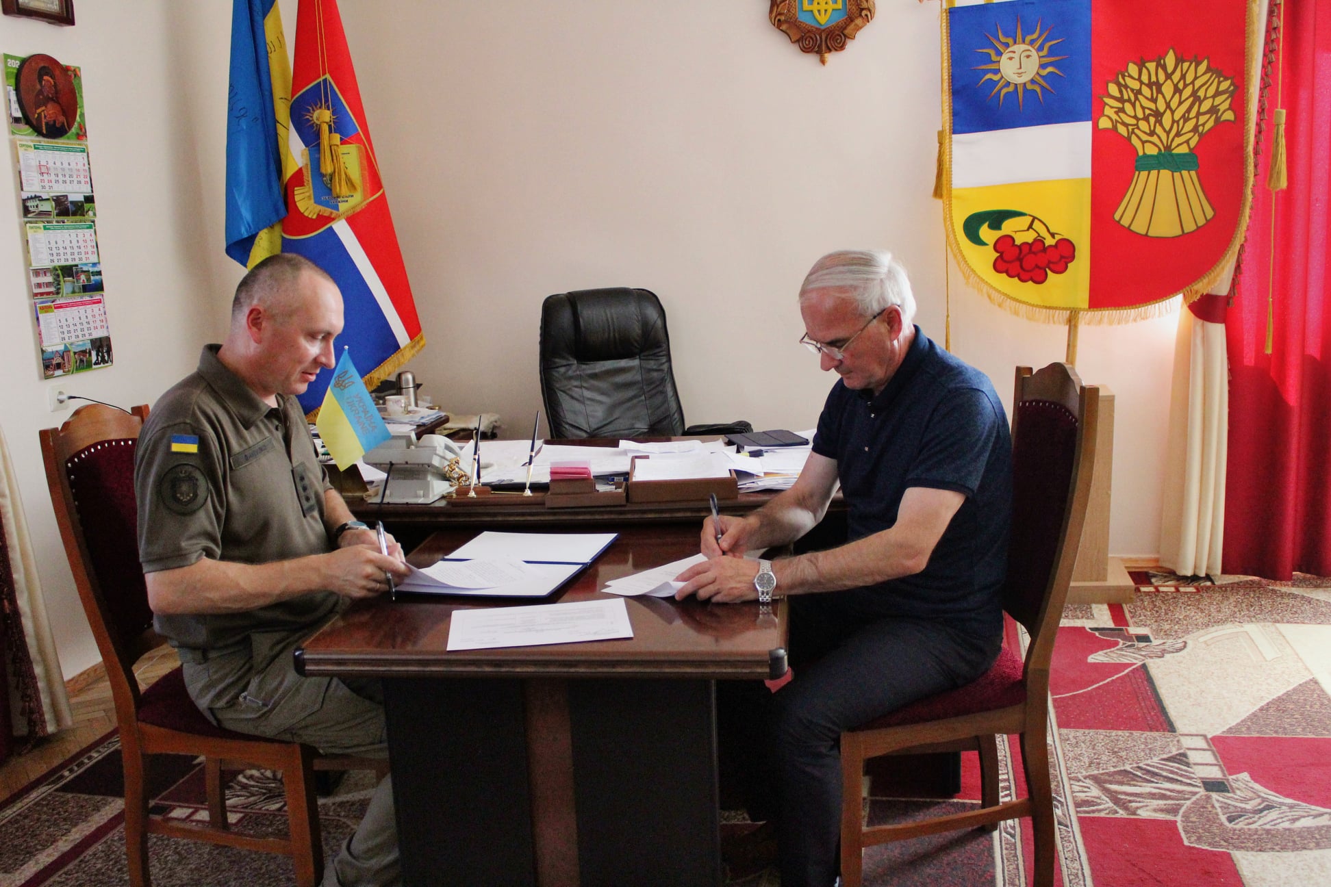 Командир 8-го полку ім. Івана Богуна Національної гвардії полковник Богдан Вакулко разом з головою Калинівської міської ради Василем Поліщуком підписали угоду про шефські зв’язки та співробітництво.