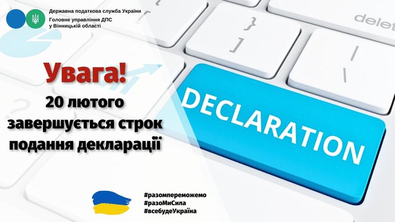 ГУ ДПС у Вінницькій області звертає увагу, що 20 лютого 2024 року завершується строк подання юридичними особами декларацій з податку на нерухомість, плати за землю та транспортного податку на 2024 рік.