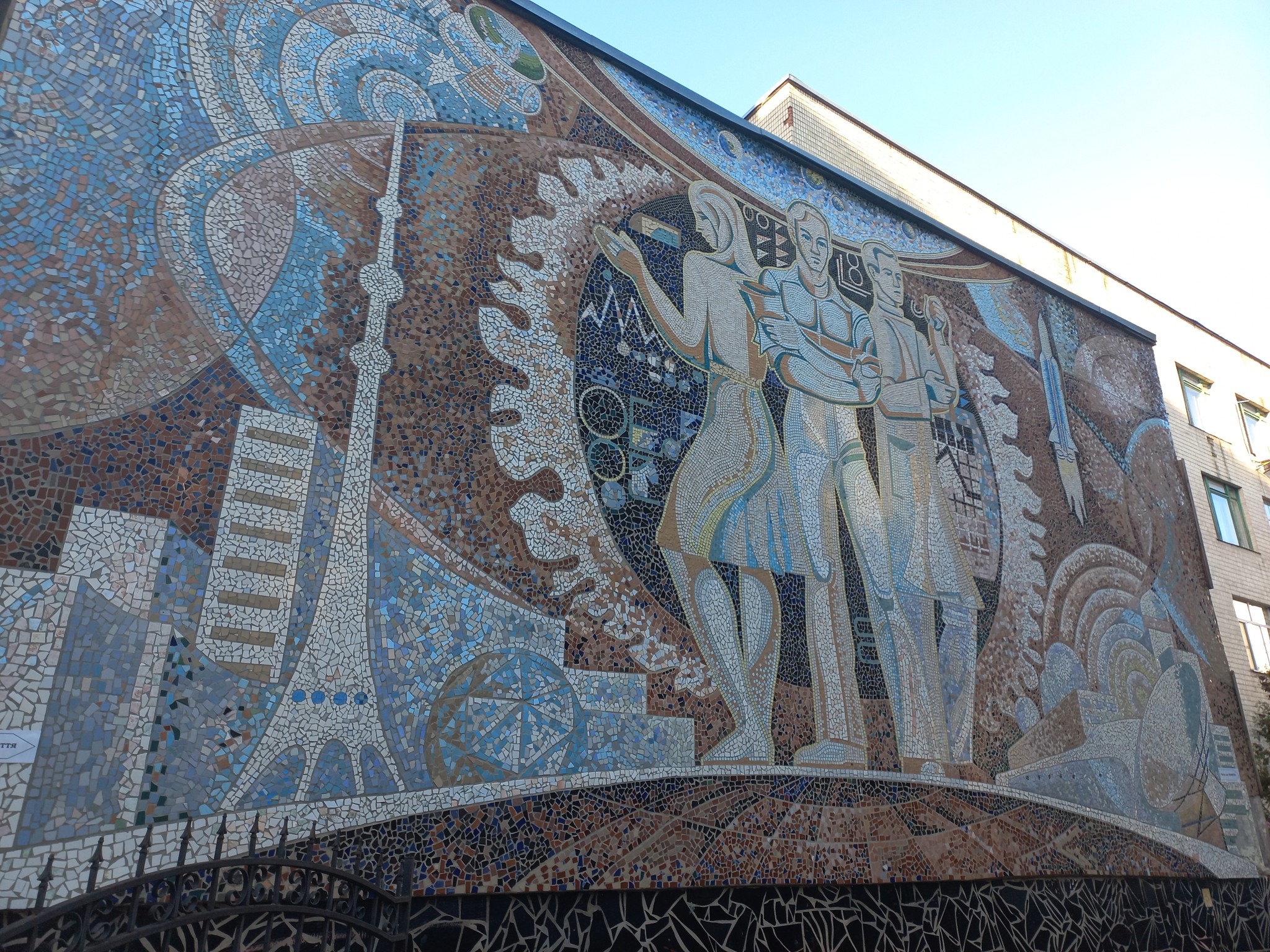 Прикметно, що одним із центральних об’єктів, зображених на мозаїці, є Останкінська телевежа у Москві. Зараз це ретранслятор російського пропагандистського телебачення.