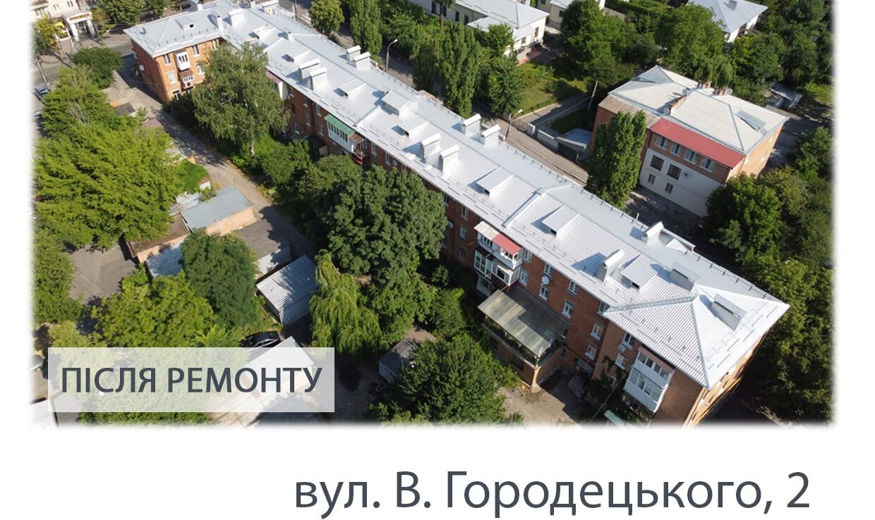 Нещодавно завершили ремонт дахів житлових будинків за адресами: вул. В. Городецького, 2; вул. Магістратська, 54; 1-ий пров. Київський, 59; вул. Некрасова, 42. Мешканці цих багатоповерхівок створили ОСББ і отримали підтримку з бюджету громади на ремонт одного конструктивного елементу. Вони обрали ремонт покрівель.