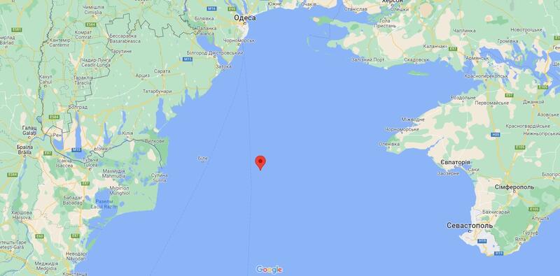 У цей момент корабель перебував на схід від острова Зміїний – 80 морських миль від Одеси та 50 морських миль від українського узбережжя. Точні координати в момент удару українських ракет по російському крейсеру 45°10’43.39?N, 30°55’30.54?E
