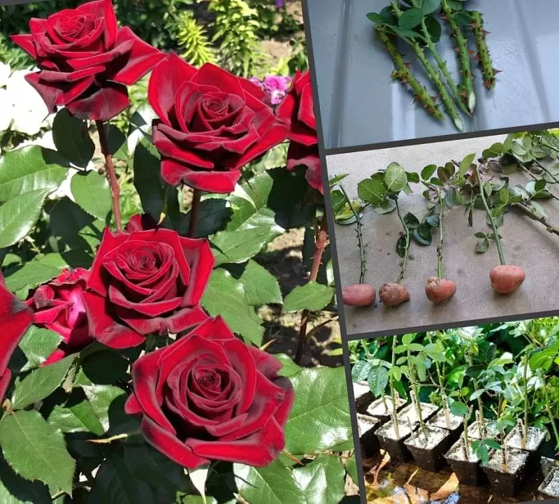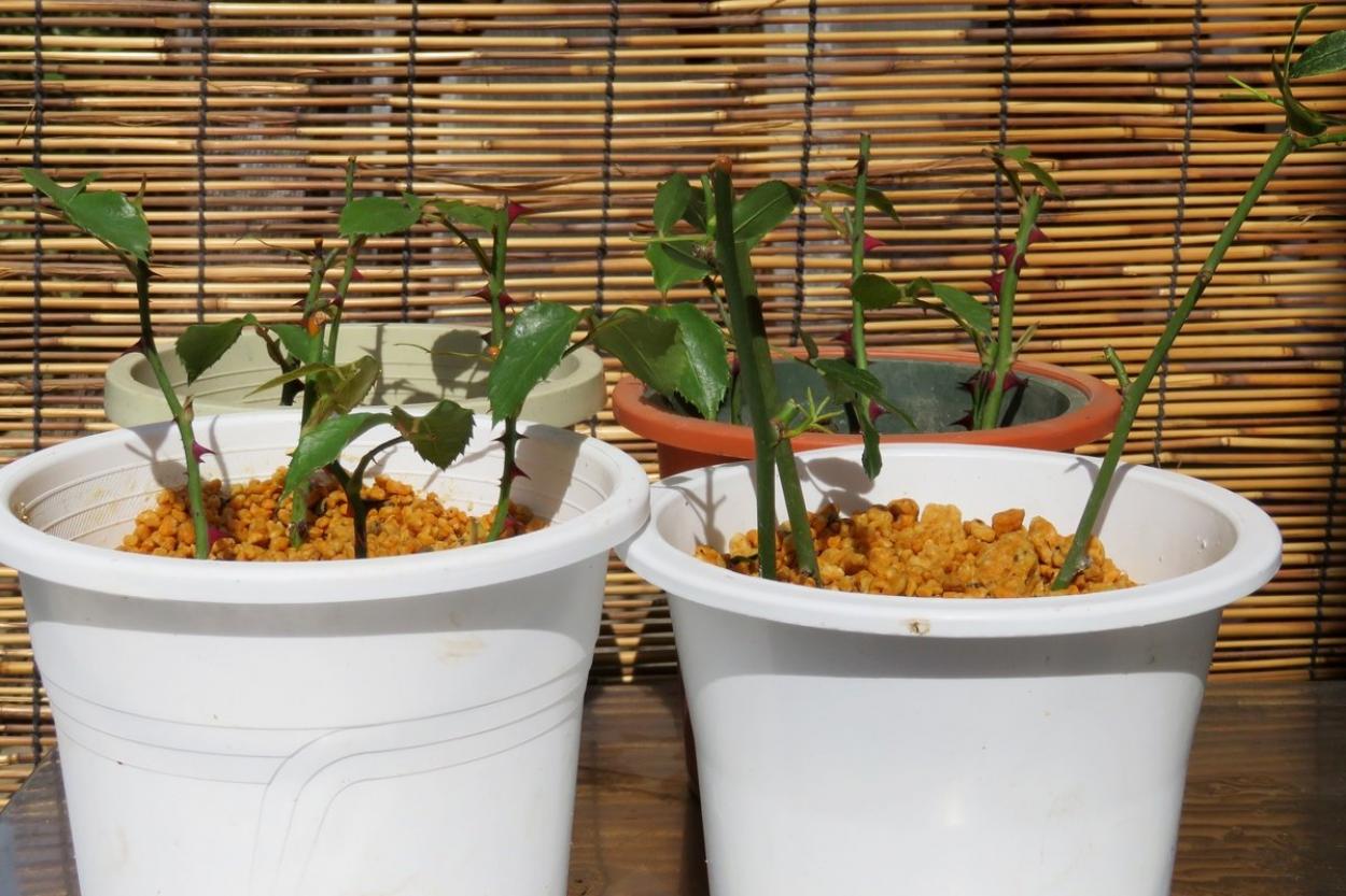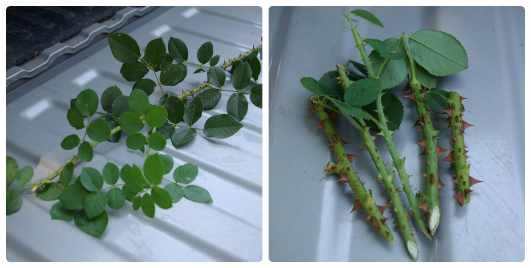 Живці троянд вибирають довжиною близько 20 сантиметрів (на 4-5 бруньок, видаливши листя), нижній зріз прямий під брунькою, верхній косий – на 8-10 міліметрів над брунькою.