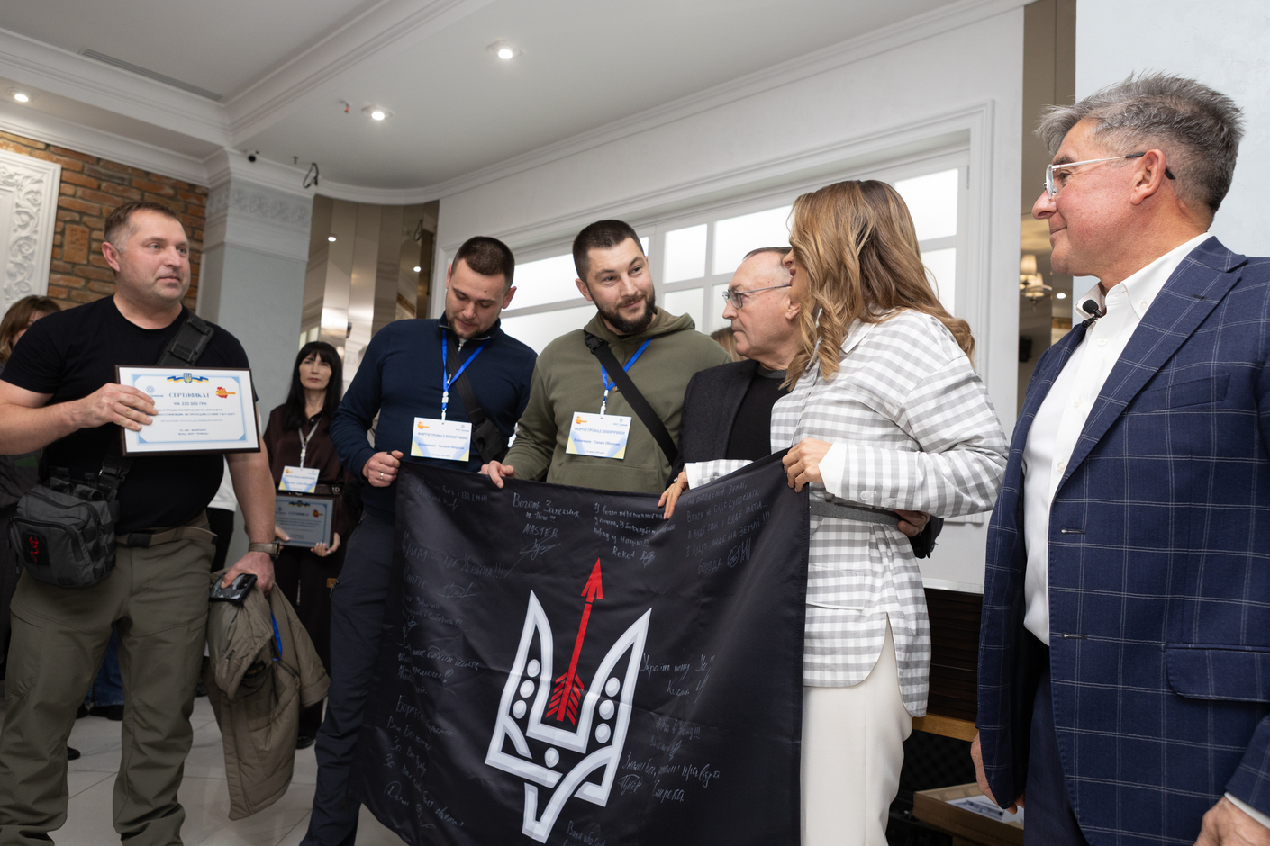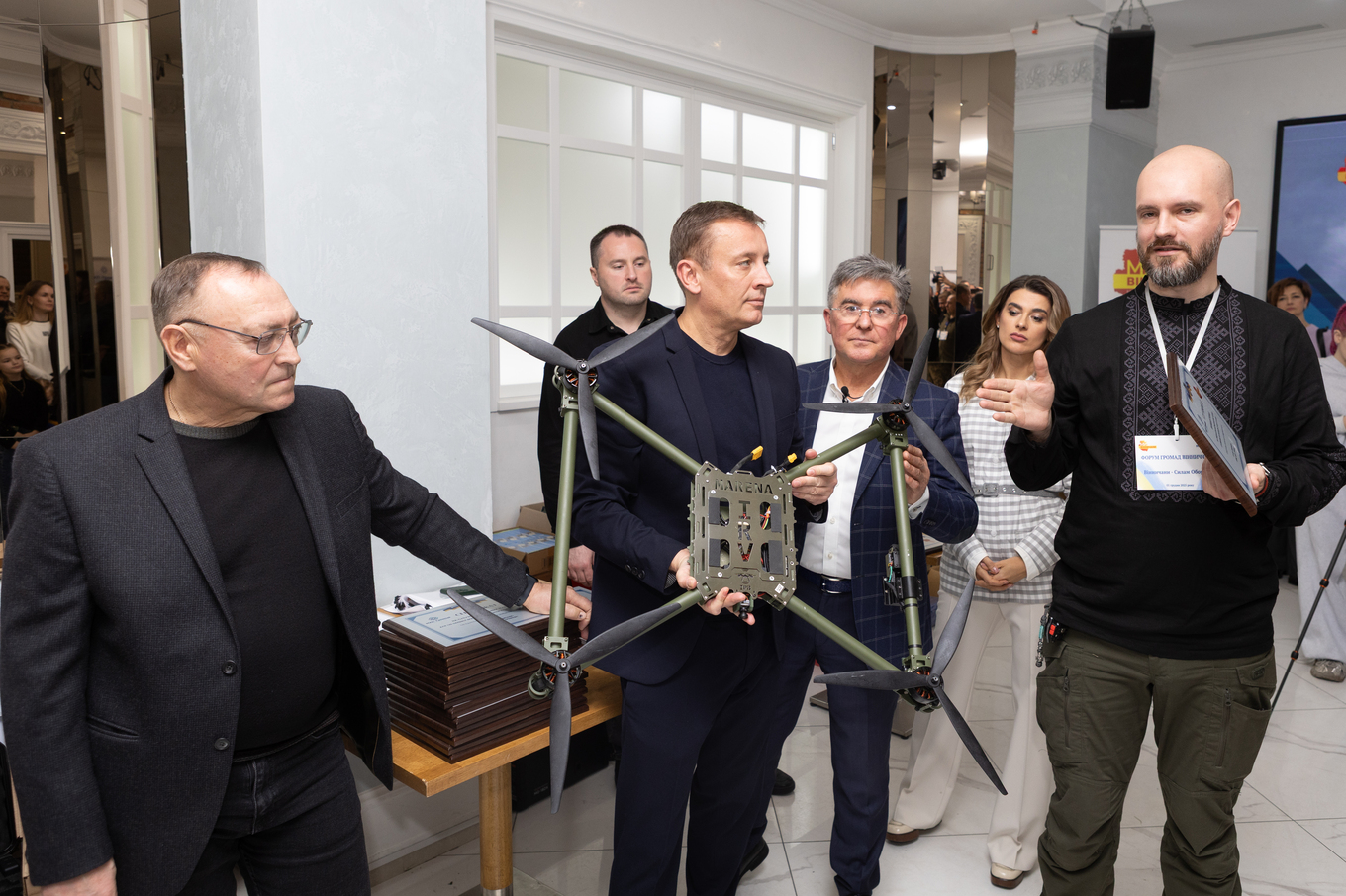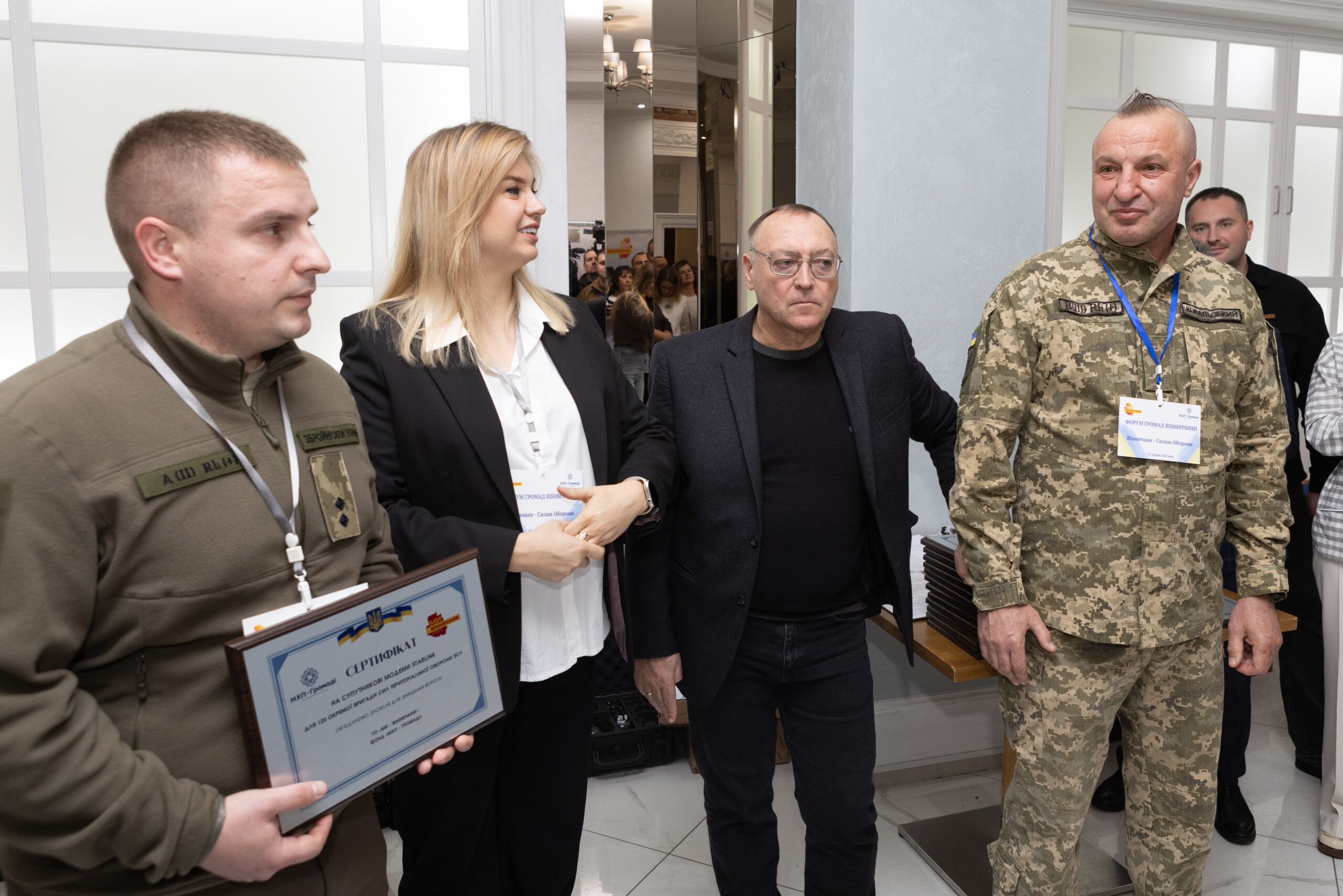 Голова ГО «Ми – Вінничани» Валерій Коровій та партнери, а це народні депутати Лариса Білозір, Микола Кучер, представниця народного депутата Геннадія Вацака Тетяна Фоменко, голова вінницького осередку ГО Сергій Кудлаєнко та представниця БФ «МХП-Громаді» передали військовим та представникам громад сертифікати на отримання необхідного військового обладнання, відповідно до запитів воїнів, які несуть службу у різних підрозділах Сил оборони.