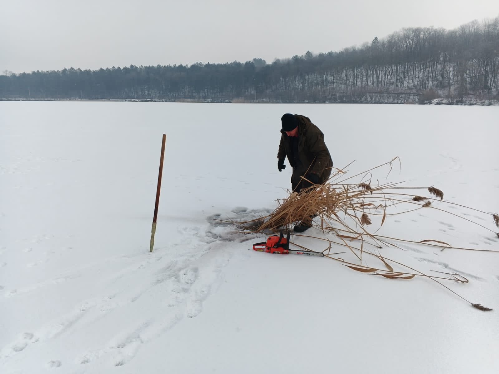 Працівники Вінницького рибоохоронного патруля щоденно працюють на водоймах області, щоб не допустити екологічної катастрофи. Рибоохоронці проводять прорубування ополонок, облаштовують лунки для надходження кисню та вирубують очерет, який у зимовий період перешкоджає природному газообміну у воді.