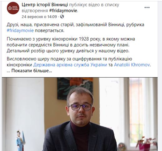 Висловлюємо щиру подяку за оцифрування та публікацію кінохроніки Державна архівна служба України та Anatolii Khromov», – йдеться у дописі Центру у Фейсбуці.