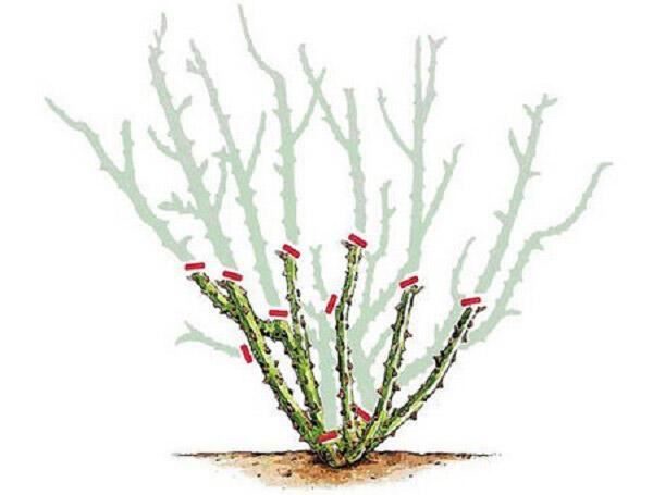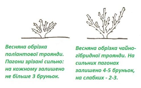 Навесні ви зможете створити кущам певну форму, і видалити гілки, що відмерли. Врахуйте, що після радикального обрізання кущі троянд зацвітуть пізніше, але цвітіння триватиме довше.