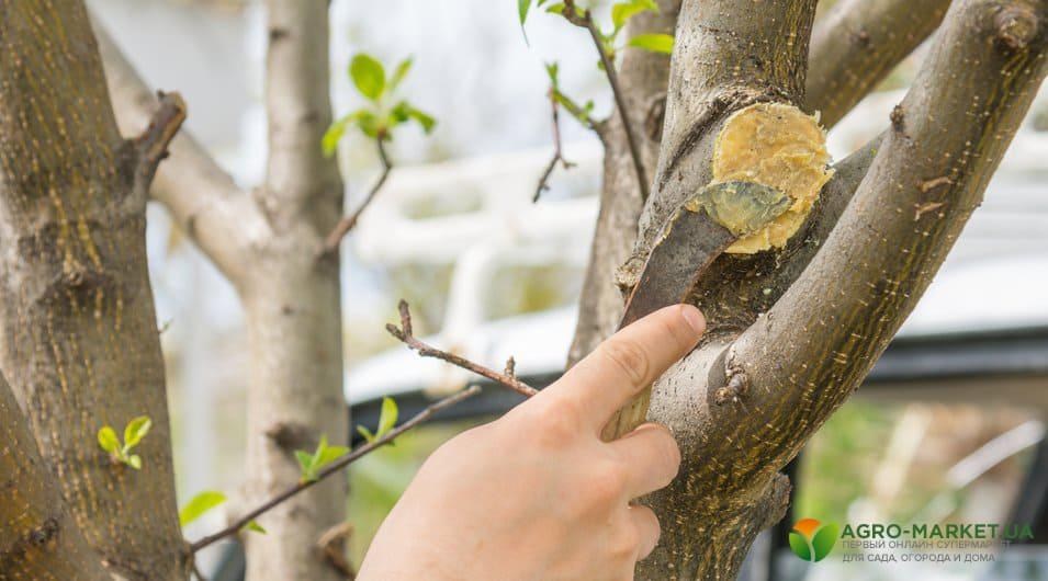 Садове вапно дезінфікує рану та захищає дерево від шкідників.
