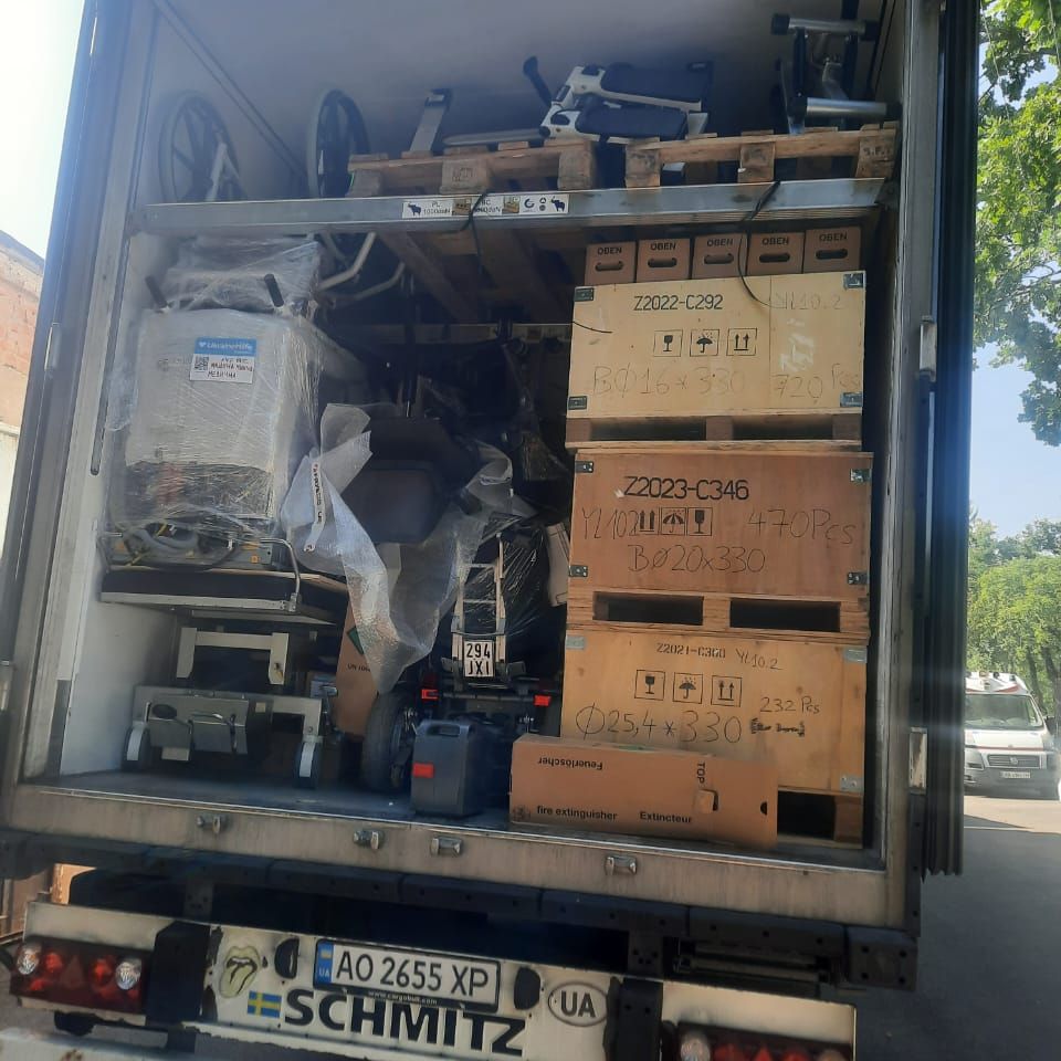До Вінниці надіслали медичні ліжка з електроприводом, матраци, приліжкові тумби, набори офтальмологічного та ЛОР-обладнання, підйомники для пацієнтів, гігієнічні набори та засоби тощо. Усього – понад 9 тонн допомоги. Ці засоби передали для медичних закладів Вінниці.