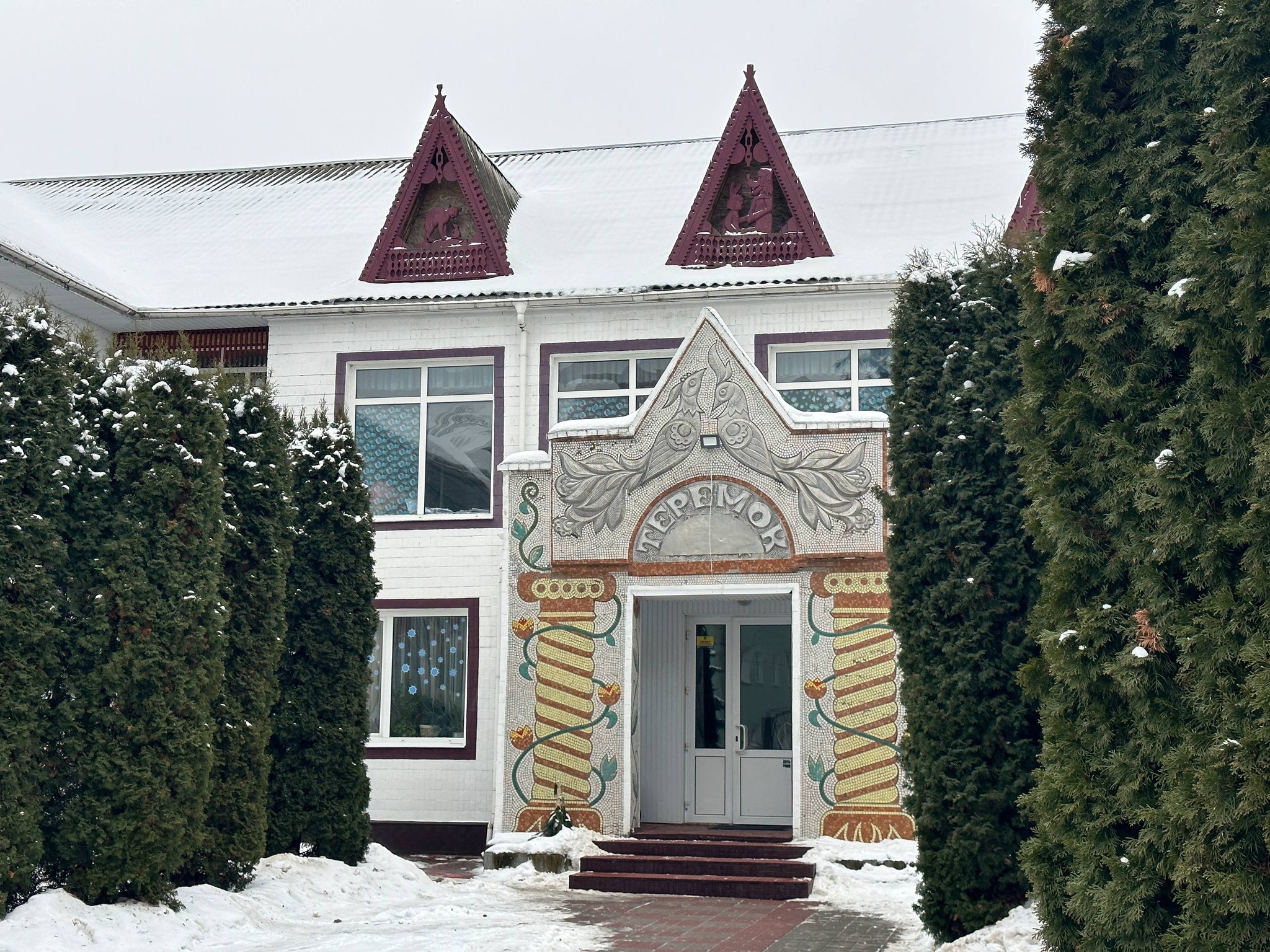 Комплекс мозаїк “Казковий світ” на будівлі дитячого садочка (три зображення)» – розташований в самому серці міста по вулиці Грушевського набув статусу об’єкта культурної спадщини відповідно до подання БОКС ДАтаМ ВМР. Наказом ОДА № 24-ОД від 19.08.2025 її занесено до переліку нововиявлених. Це частина комплексного проекту збереження монументальної спадщини міста.