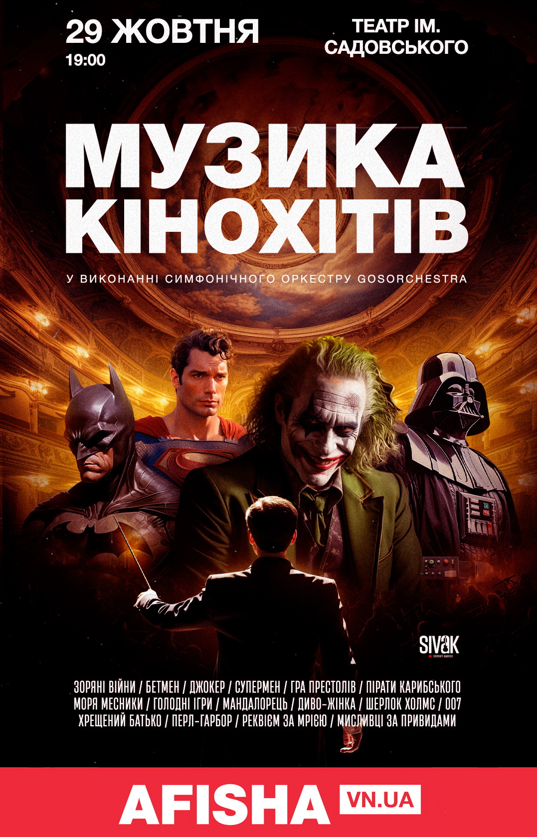 Від епічних саундтреків «Зоряних війн» до культових мелодій з кіновсесвітів Marvel та DC, від пригодницьких «Піратів Карибського моря» до фантастичних «Мисливців за привидами».