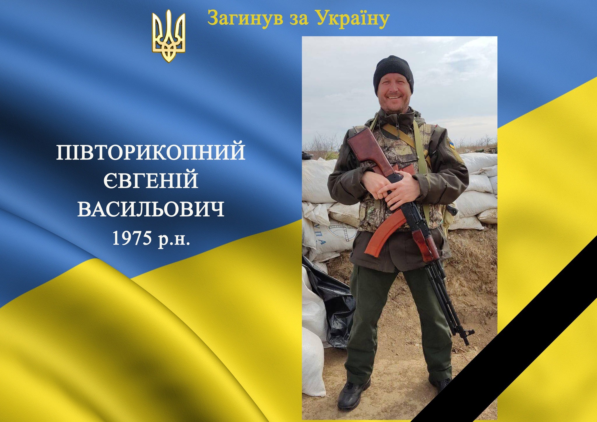 «Клята війна забрала сина, коханого чоловіка, люблячого батька, доброго друга, вірного побратима… Пекучий біль огорнув наші серця. Щирої, красивої усмішки й теплого, глибокого погляду Євгенія бракуватиме багатьом, хто його знав, поважав і любив. Співчуваємо рідним та близьким відважного воїна. Доземно вклоняємось та розділяємо біль вашої утрати. Нехай опіка Всевишнього полегшить гіркоту втрати дорогої та рідної людини, нашого Героя, який віддав своє життя за волю та незалежність усієї України», – йдеться у повідомленні.