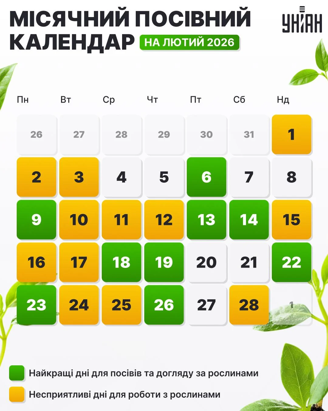 Таким чином, найкращі дні для посадки в лютому 2026 року – це 6, 9, 13-14, 18-19, 22-23, 26 число.