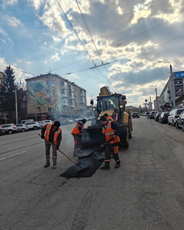 Вчора, 18 березня, до робіт з ремонту дорожнього покриття було залучено 7 бригад. Роботи ведуться на вулицях Корнелюка, Пирогова, Театральній (у бік Київського мосту та вулиці Чорновола), Гонти, Хмельницькому шосе та на інших локаціях.