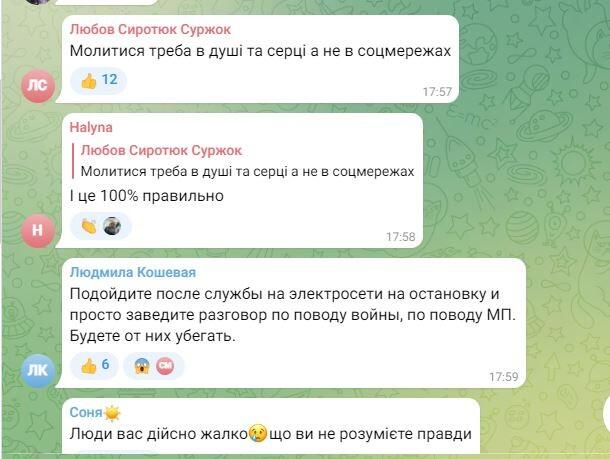 Деякі з цих коментарів ми оприлюднюємо, з іншими можна ознайомитися безпосередньо на Телеграм-каналі.