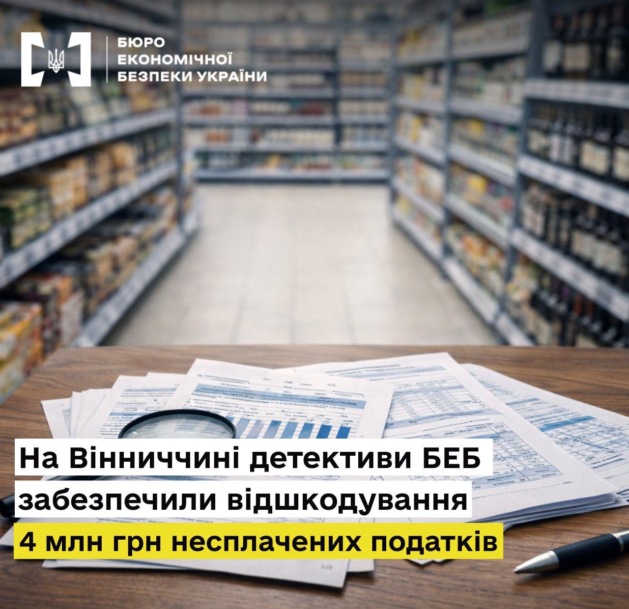 Детективи ТУ БЕБ у Вінницькій області завершили досудове розслідування за фактом умисного ухилення від сплати податків директором товариства, яке займається роздрібною торгівлею продуктами харчування, напоями та тютюновими виробами через власну мережу супермаркетів.