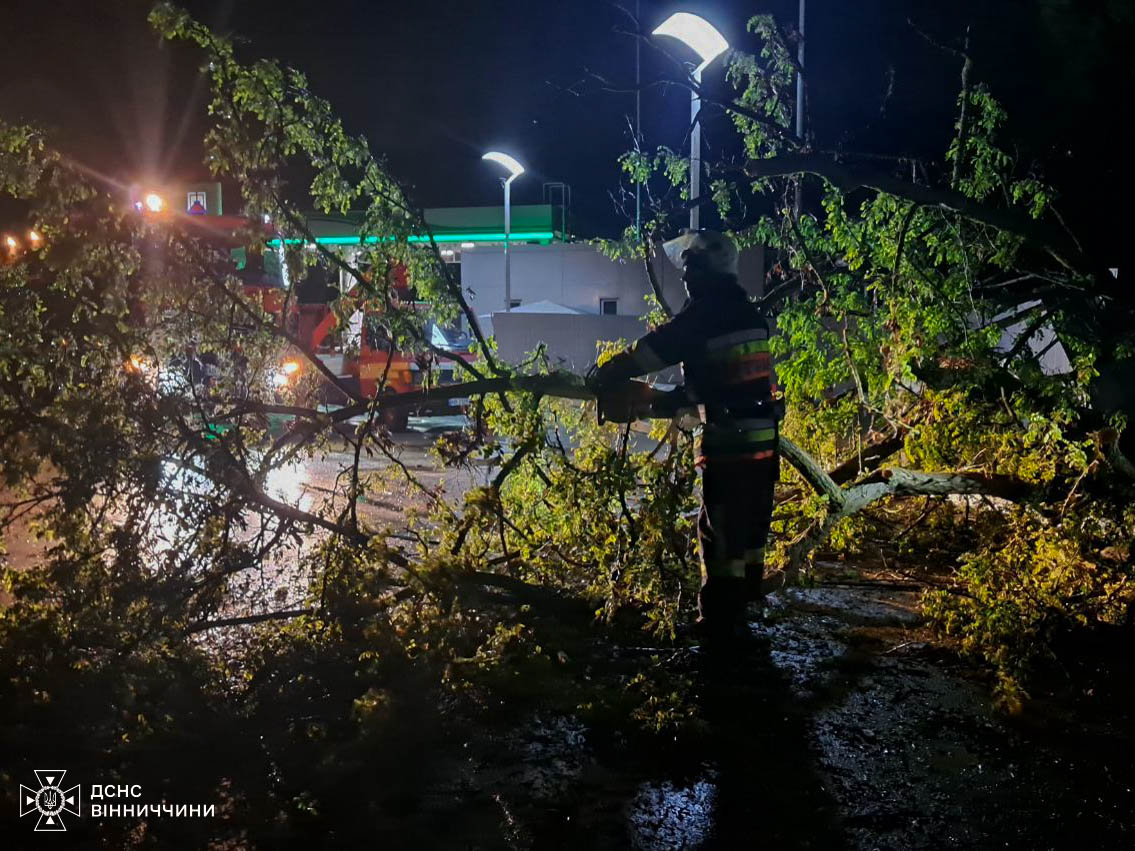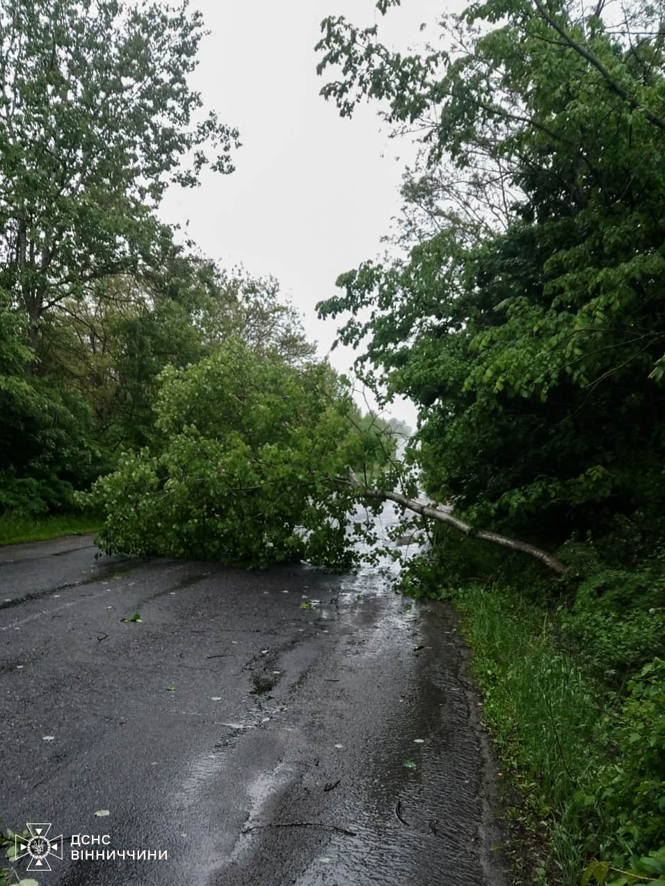 Внаслідок пориву вітру та дощу на автошляхи області попадали дерева у Вінницькій, Теплицькій, Хмільницькій, Райгородській, Жмеринській, Гніванській громадах та на Львівському шосе у місті Вінниці.