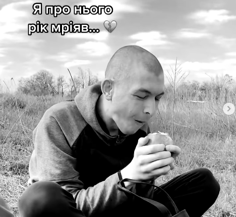 У Координаційному штабі поділилися відео з обміну 26 квітня, коли Дмитро вперше після року неволі скуштував яблуко.