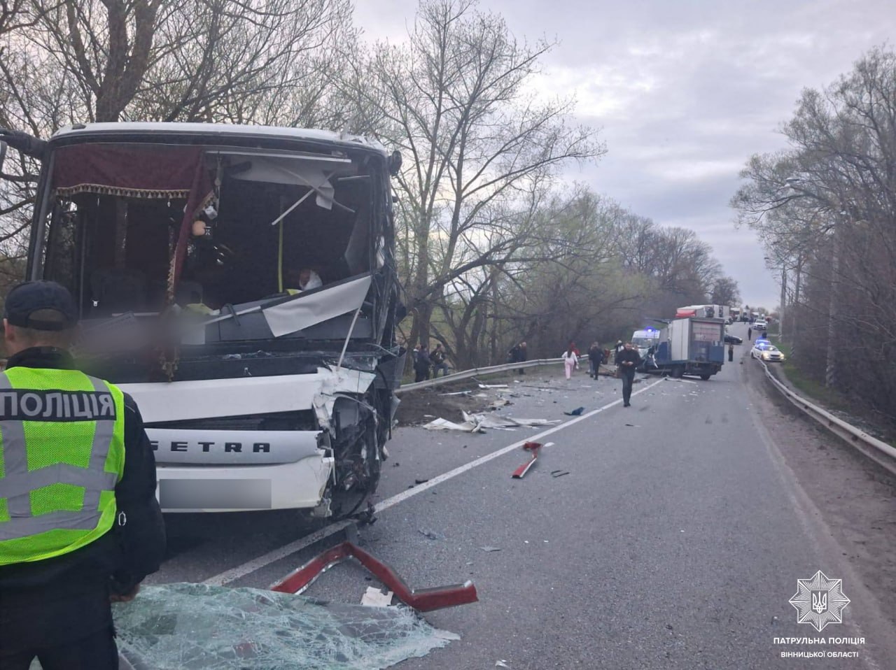 На автодорозі М-21, поблизу населеного пункту Перемога, відбулася дорожньо-транспортна пригода. Рух перекривали поліцейські. Внаслідок ДТП водій вантажівки отримав травми, несумісні з життям. Водія автобуса та ще двох пасажирів обстежують лікарі.