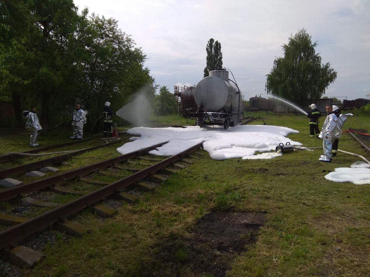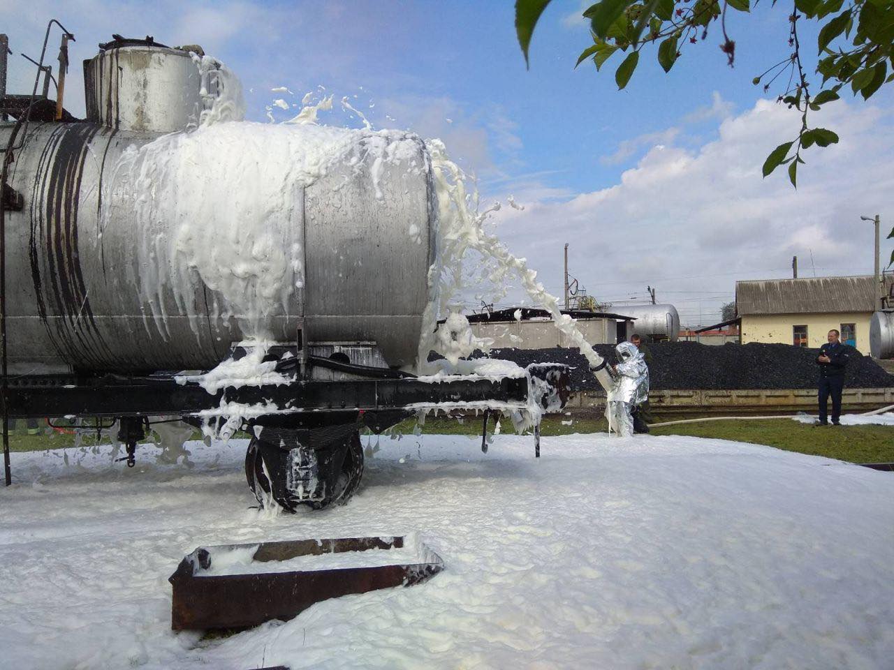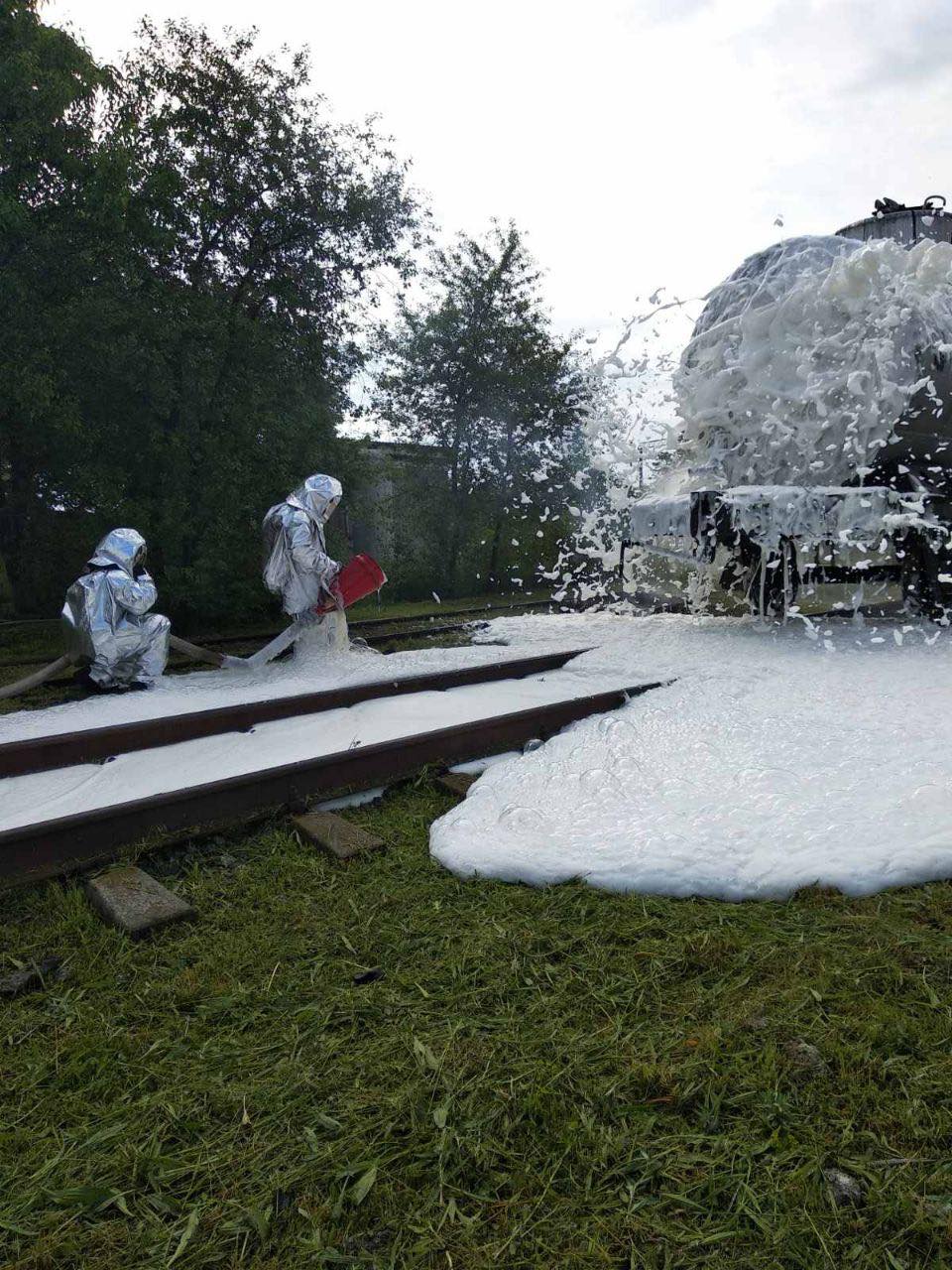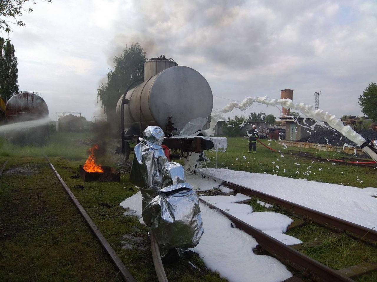«До приїзду рятувальників, працівниками пожежного депо вогонь було частково локалізовано, тому першочерговими діями вогнеборців, що прибули на місце гасіння умовної пожежі було повністю ліквідувати пожежу.