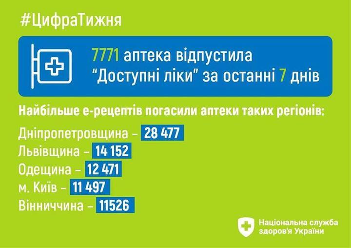 За останні сім днів 7771 аптека відпустила ліки за програмою «Доступні ліки».