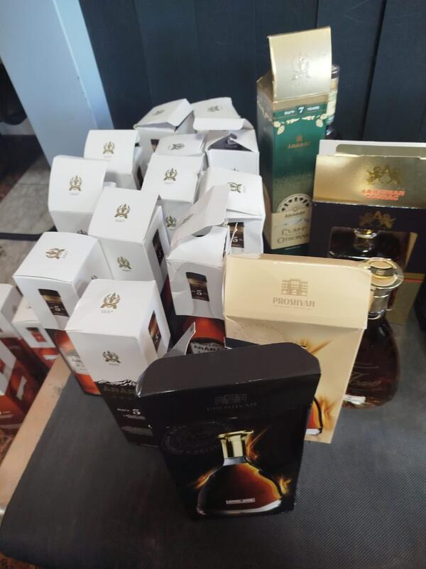 Під час митного контролю серед особистих речей даної громадянки було виявлено 21 пляшку бренді «Арарат» та 2 пляшки коньяку «Мане».