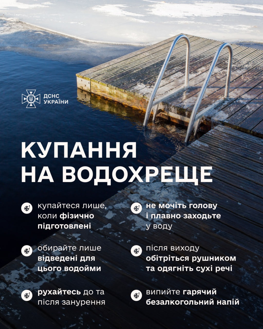 «В Україні наразі діє воєнний стан, тож масові зібрання й купання нині не на часі задля безпеки кожного, адже це може використати ворог. 6 січня рекомендуємо утриматися від масових заходів на Водохреще. Але на традиційних локаціях для купань буде організовано чергування рятувальників, щоб уникнути травмування та інших небезпечних ситуацій», – йдеться у повідомленні.