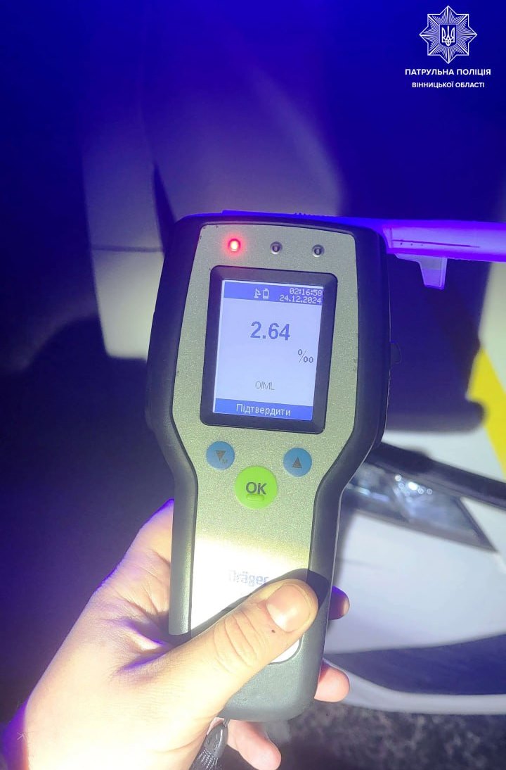 Водійці запропонували пройти перевірку на спецприладі Драгер. Результат показав, що в організмі жінки було 2,64 проміле алкоголю, а це більш ніж в 13 разів перевищує допустиму норму», – йдеться у повідомленні.