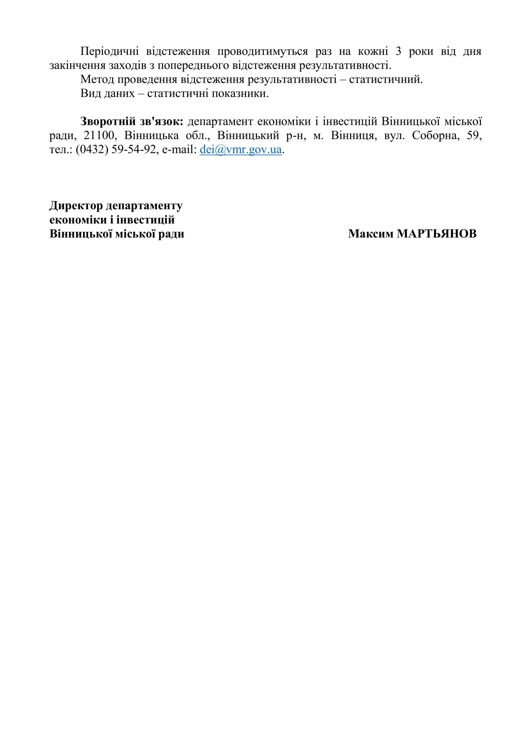 • поштову та електронну адреси департаменту економіки і інвестицій міської ради: 21050, м. Вінниця, вул. Соборна, 59, департамент економіки і інвестицій Вінницької міської ради, каб. №809; e-mail: dei@vmr.gov.ua», – йдеться у повідомленні.