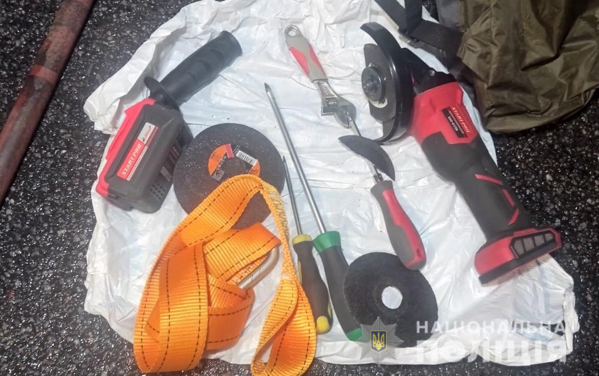 У злочинців під час затримання вилучили інструменти для злому сейфів, замків, металевих грат, балаклави, рації, відмички, а також гроші, викрадені з сейфа.
