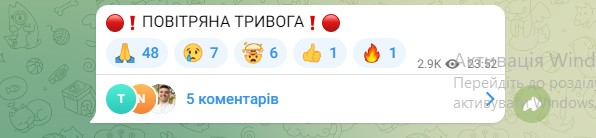 Про тривогу повідомили й очільники області та міста у своїх Телеграм-каналах.