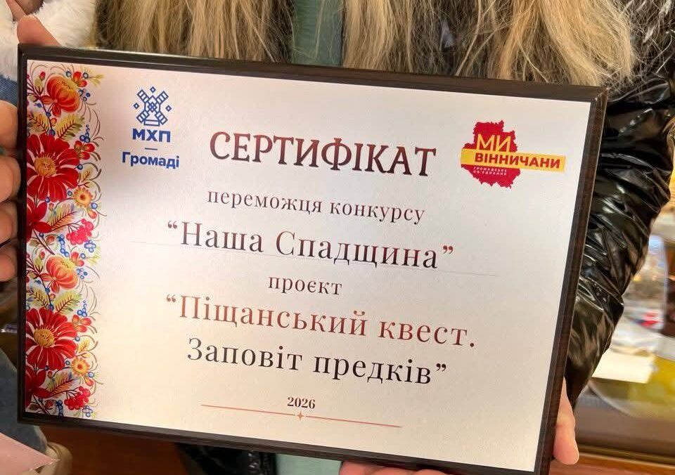 Ініціатива місцевих ентузіастів проєкт «Піщанський квест. Заповіт предків» здобула перемогу у конкурсі «Наша Спадщина» від ГО «Ми – Вінничани» та Благодійного фонду «МХП-Громаді».
