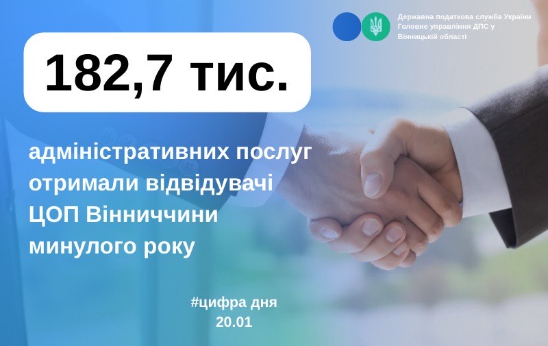 У Вінницькій області протягом 2025 року відвідувачам Центрів обслуговування платників регіону надано 182,7 тис. адміністративних послуг.