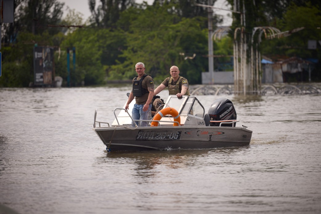 Глава держави у Херсоні також відвідав одну з точок евакуації населення з підтоплених територій. Президент оглянув техніку, яка використовується для евакуаційних заходів, і безпосередньо ознайомився з роботою рятувальників і волонтерів.