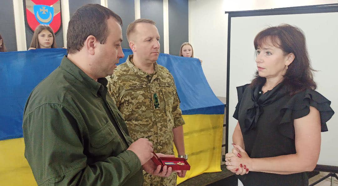 Начальник Південного регіонального управління ДПСУ Сергій Мула та командир Могилів-Подільського прикордонного загону Олег Ковальчук разом з начальником ОВА Сергієм Борзовим та керівництвом Жмеринської РВА передали Ордени «За мужність» ІІІ ступеня рідним загиблих.