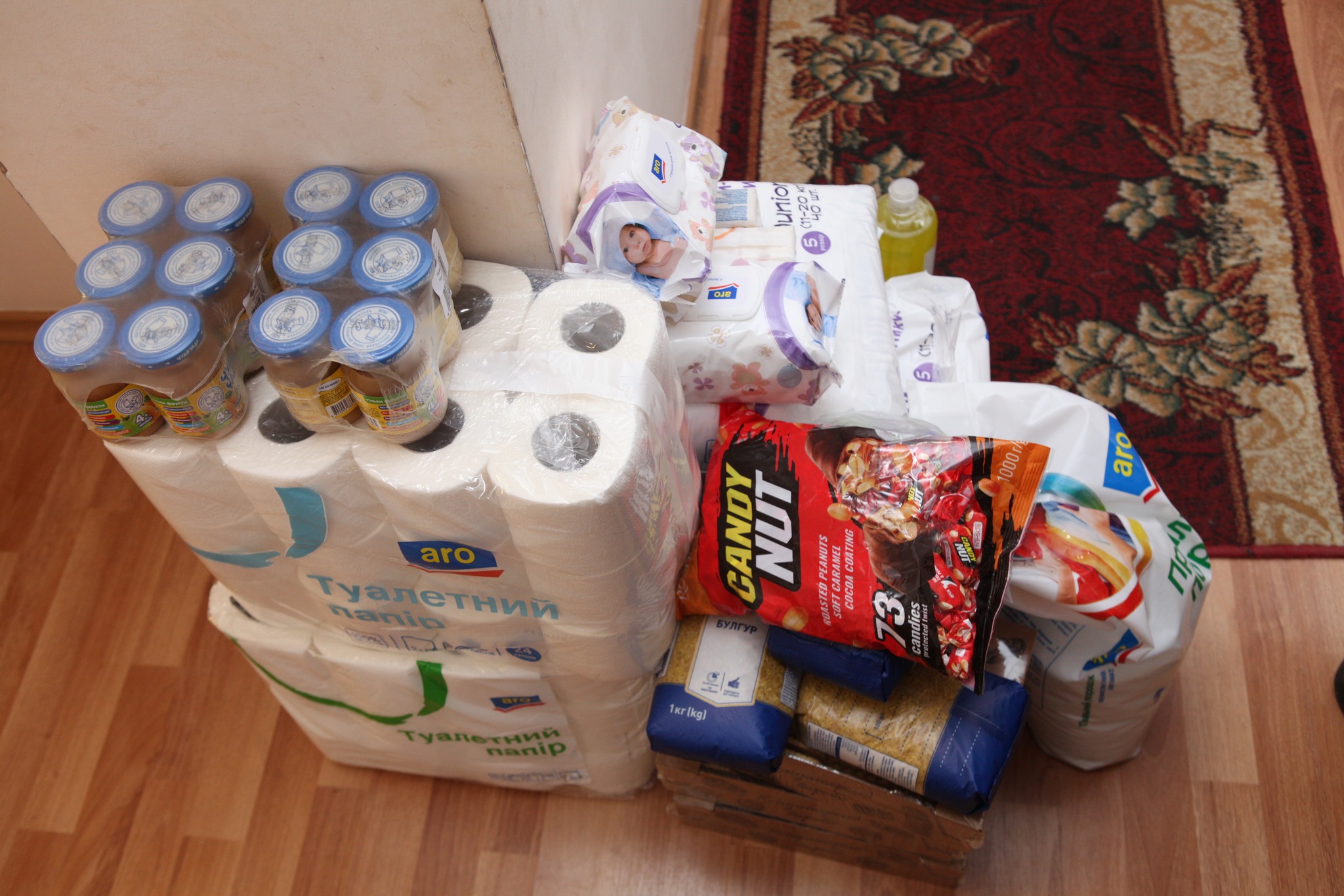 У комплектах допомоги, які придбали за кошти, зібрані після повідомлення про потребу в соцмережах, були харчі, засоби гігієни, побутова хімія та техніка.