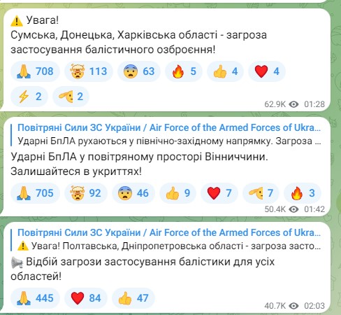 До завершення тривоги не залишайте укриттів, бережіть своє життя та життя рідних. Зберігайте спокій та не панікуйте. Про подальший перебіг подій буде додаткова інформація», – йшлося у повідомленні.