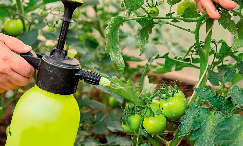 1 таблетку «Трихополу» розчиняють у 1 літрі води та обприскують томати кожні два тижні.