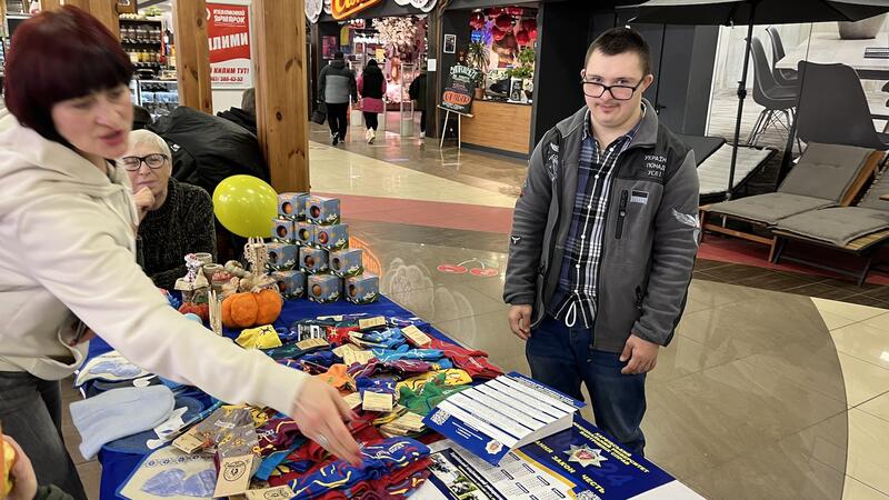 «На початку повномасштабного вторгнення зі мною зв’язалось керівництво університету, вони захотіли познайомитись з нашими дітьми. Організували зустріч на яку наші гості приїхали з подарунками, розважальною програмою, солодощами. Так і зав’язалась справжня дружба та співпраця. Тому ми сьогодні тут, також долучились до акції. За донат у нас можна отримати яскраві шкарпетки та печиво», – зазначила голова ГО “ВІННИЦЯ ДАУН СИНДРОМ” Марина Григорцева.
