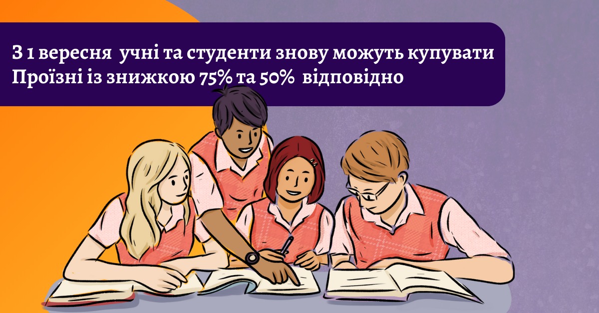З 1 вересня, учні та студенти знову можуть придбати проїзні за зниженою вартістю. Знижка для учнів становить 75%, для студентів – 50%.