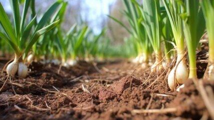 Від того, якою буде зелена маса, залежить розмір і кількість майбутнього врожаю. Підживіть часник аміачною селітрою.