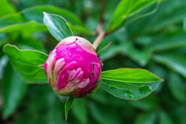 Навесні, коли у півоній формуються бутони, на них з’являється цукровий сік, який приваблює комах. Ви його можете сплутати з росою, але якщо доторкнутися до нього, ваші пальці склеяться.