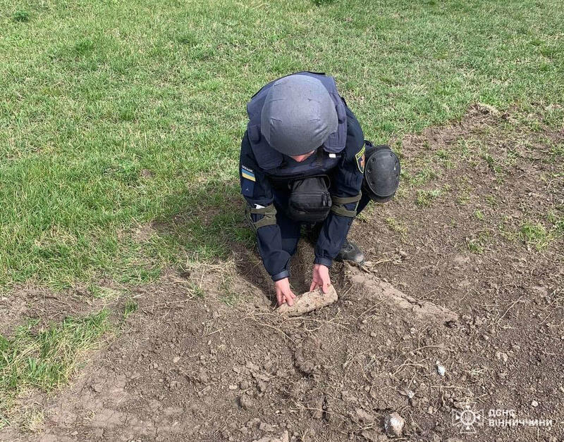 У Вінницькій області сапери ДСНС знищили артилерійський снаряд калібром 76 мм часів Другої світової війни.