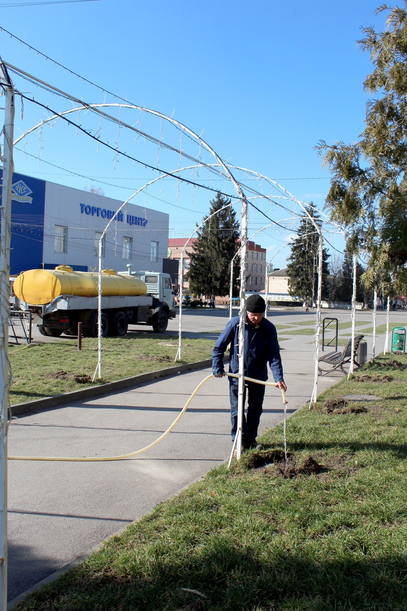 Працівниці тепличного господарства комунального підприємства «Добробут» Іллінецької міської ради під керівництвом майстра з озеленення Валентини Андрушко висаджували троянди у центрі міста, вздовж аркової алеї та в районі автостанції.