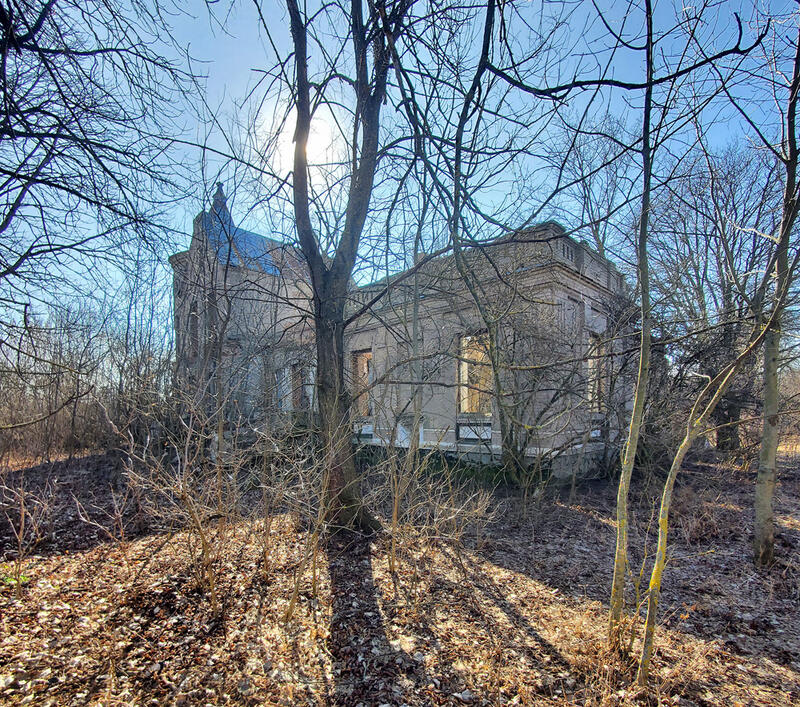Спочатку здалося, що крізь чагарі бачимо силует невеликого палацика, чи то навіть вілли. Але ні – виявилося, що розмір будівлі досить солідний, а архітектура достатньо складна.