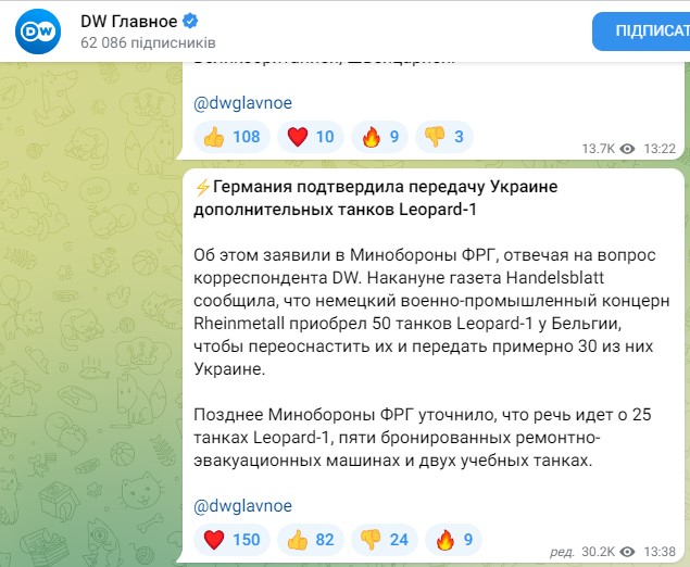 Берлін уточнив, що йдеться про 25 танків Leopard 1, п’ять броньованих ремонтно-евакуаційних машин і два навчальні танки.