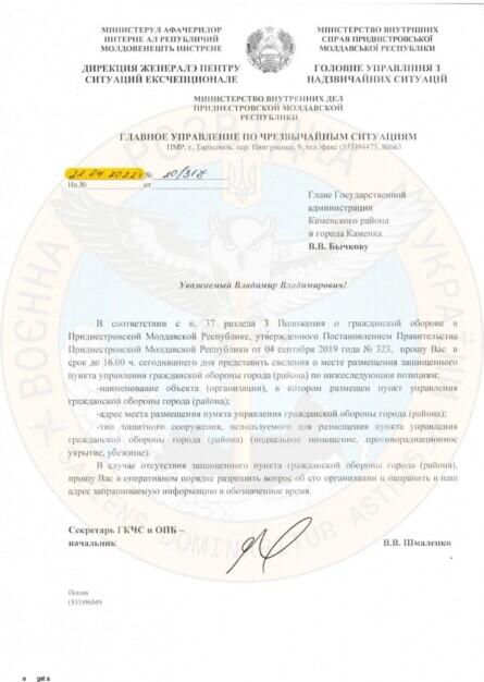 У ГУР додали, що для керівництва Придністров’я обстріл будівлі в центрі Тирасполя не став несподіванкою. Ще 22 квітня стало відомо про плани влади ПМР підготувати «захищений пункт управління цивільної оборони міста». При цьому підкреслювалося, що в разі його відсутності ставилося завдання про його термінове створення.